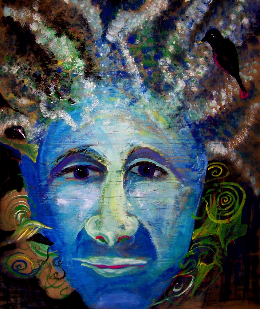 Before my life started unraveling, I painted another acrylic on canvas using some of my watercolor layering techniques for the green skirt and pigment powders in the background. I love the love. It accurately illustrates my longing to protect the beauty and rich diversity of our planetary home. She’s called I Wish I Could and was purchased off my bedroom wall by a visiting friend from Missoula. Thank you L.E.