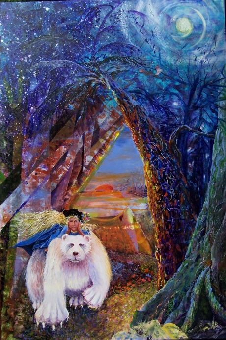 I vowed not to look at any photographs to help me paint the bear and the young woman on his back.
