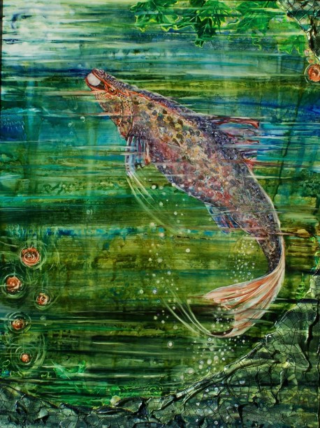 The fish is a stamp I designed. I often use it for the decorative cradles that serve as frames on these pieces.