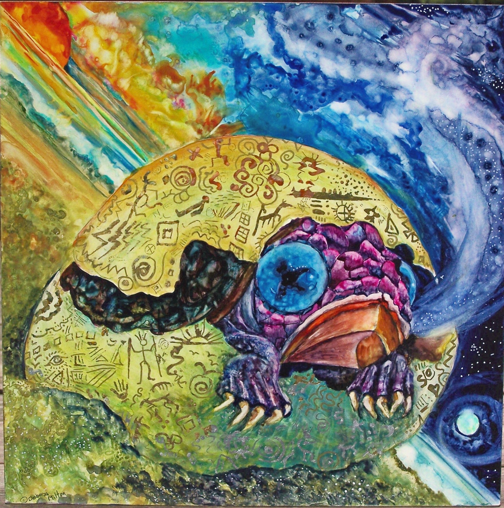1. Deborah – Your paintings are some of my favorite pieces of spiritual art. I am so glad you are offering your gifts to the world in this way. I am interested both in Cave of the Dreaming Bear” and “Waiting for the Future.” Are they both still available? “Bone Thrower” is a beautiful piece, and I also really loved “Around the Bend” and “Crack in the Cosmic Egg”, among others. Love your cosmic colors.